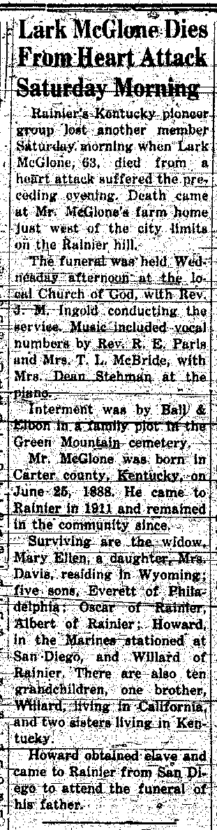 Obituary: from the Rainier, Oregon Review June 2, 1938