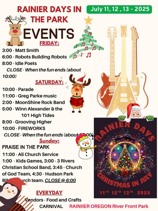 Our Grand Marshals for the 2025 Rainier Days in the Park are Kay Heflin, President, and Duane Bernard, Vice President, of the Rainier Oregon Historical Museum.